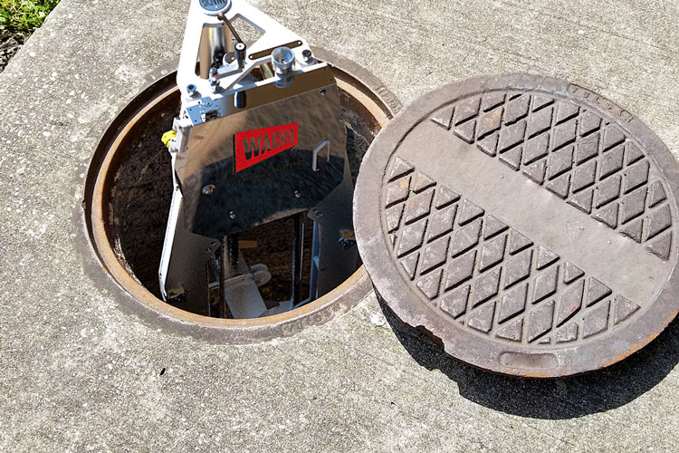 The big brother to Wachs DW Guillotine® 208 diamond wire saw, the DWG 416 is designed for cutting 4 inch to 16 inch (DN100-400) pipe including steel, ductile, cast iron, concrete (CA), poly, PVC and mixed media. The DWG 416 features exceptional build quality, with stainless steel and aluminum construction for corrosion resistance, and a collapsible, folding arm design that allows it to be easily transported and stored.